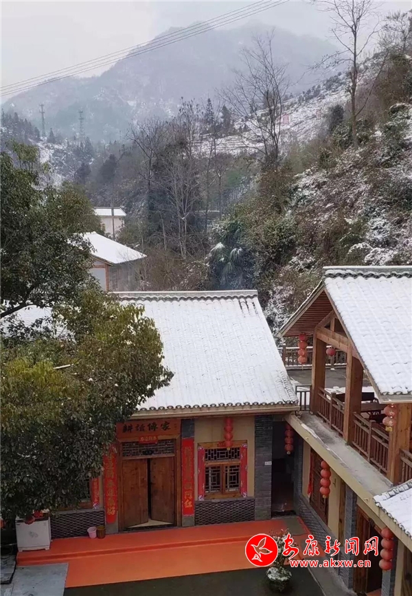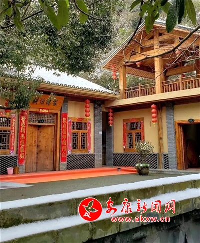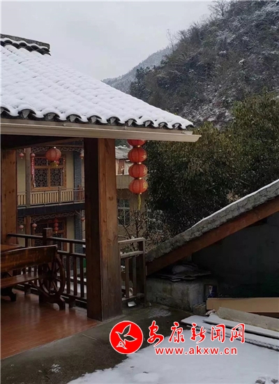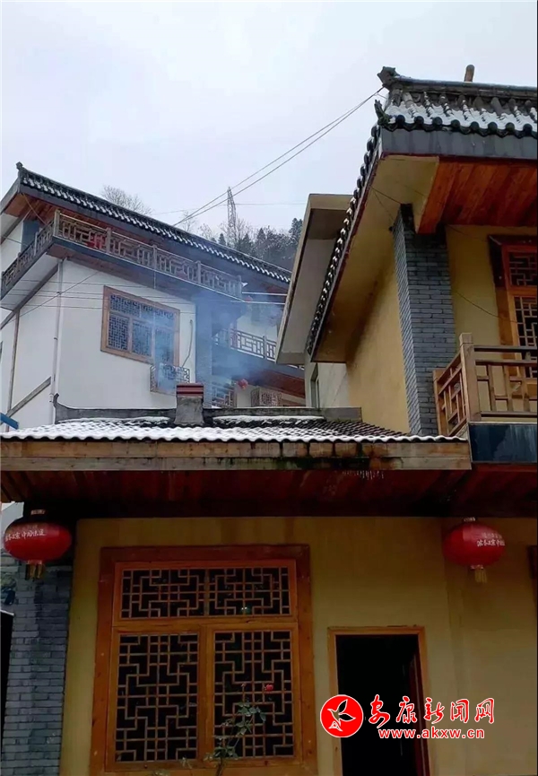 紅屋檐、紅格窗、紅木門(mén)、紅楹聯(lián)、紅地毯,還有那懸掛在屋頂上隨風(fēng)舞動(dòng)的紅燈籠,在瑟瑟寒風(fēng)和茫茫白雪中,才顯其妖嬈展姿。這里,是紅與白色澤、熱與冷色溫的匯聚。紅,是一枝梅,是數(shù)盞燈,是萬(wàn)家火,是山里人熱騰騰好日子的主色調(diào)……