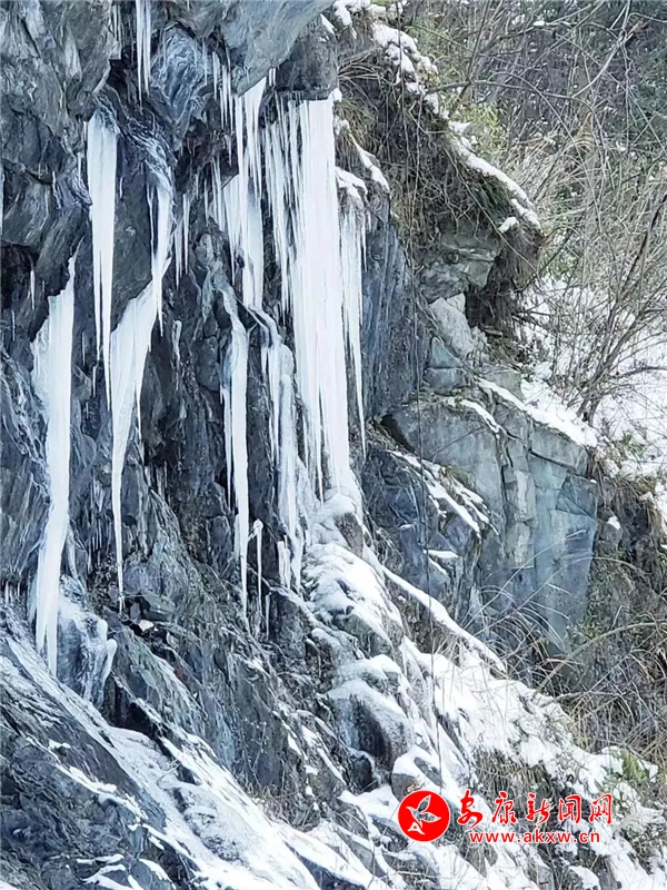 愈往深山走去,愈是銀裝素裹。發(fā)如雪,天作襯。色彩在這里失去了顏色,整個(gè)世界只剩下黑與白的構(gòu)圖。山澗中露出的黑巖,連綿著,將青絲的線條起伏蜿蜒地勾勒而出。山腳下一排排整齊的村民安置房,已顯出冬眠酣睡的樣子。樹(shù)林里帶著一層朦朧,在群山連綿中起伏著,為這雪天獻(xiàn)上了一幅絕美的水墨畫(huà)卷,也更增加了幾分神秘。