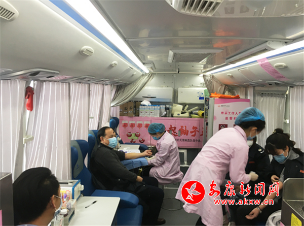 上午9時,市中心血站的一輛采血車駛進漢濱區(qū)稅務(wù)局,職工們有序地填表、量血壓、檢測血液、抽血,各個環(huán)節(jié)有條不紊地進行著。