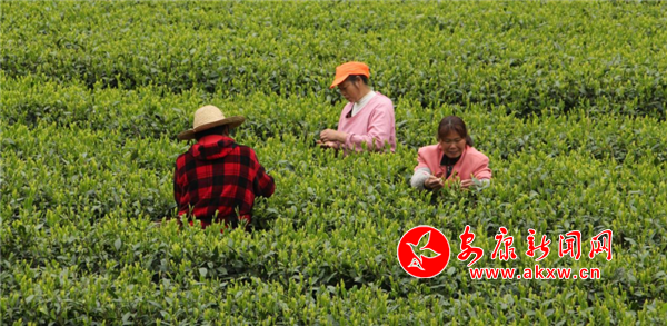 “從茶葉采摘季開始,我們每天都能掙100多塊錢,這一個多月,我們的收入可不少”。火星村村民張春霞從三月初開始就在茶葉專業(yè)合作社忙活。“你看,采摘這個茶葉也是有講究的,一葉一芽,一葉兩芽品質(zhì)不同,賣出的價錢也不同。”她隨手將采好的茶葉放進挎著的籃子里。茶園距離漢嵐青茶廠不到1000米,茶園里女工正采摘著新茶,茶廠里機器轟鳴,茶葉在炒茶機里翻滾,炒制好的新茶散發(fā)著清香,沁人心脾。