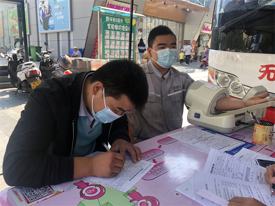 “今天是個團圓的日子,獻完血我倆逛一逛就在外面吃個團圓飯,兩個孩子還太小,坐車容易哭鬧,就把他們留在西安了,每次都是我倆這樣一起過節(jié),挺美的。”劉盼一邊獻血一邊樂呵呵地跟工作人員聊著天。因為在醫(yī)院工作,劉盼的妻子倒是對無償獻血感觸更多?!盁o償獻血意義挺好的,不管是意外事故還是其他一些疾病,救命血源是個特別重要的東西,今天八月十五,咱們中國傳統(tǒng)節(jié)日,家家戶戶心里都想著團圓,在今天這個日子獻次血,其實也算是另外一種意義上的團圓吧。”劉盼妻子笑瞇瞇地補充到