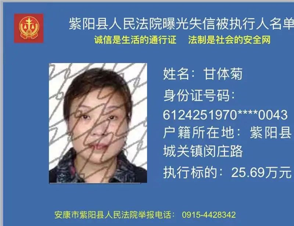 曝光失信 | 紫陽縣人民法院:關(guān)于敦促甘體菊履行法定義務的公告