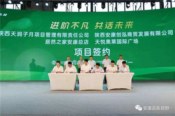 陜西天潤(rùn)子月項(xiàng)目管理有限責(zé)任公司分別與陜西安康創(chuàng)泓商貿(mào)發(fā)展有限公司、居然之家安康總店、天悅奧萊國(guó)際廣場(chǎng)簽訂了戰(zhàn)略合作協(xié)議。
