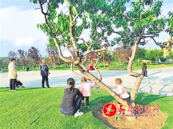 “五一”期間,在高新區(qū)桃花源景區(qū),個別游客帶領(lǐng)小孩未按照相關(guān)規(guī)定文明規(guī)范游玩,小孩攀爬樹木,很是危險(xiǎn)。(陳榮斌 攝)