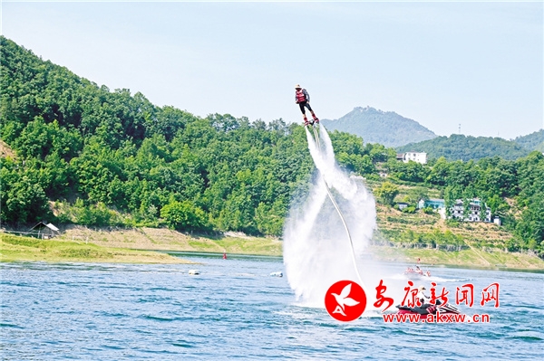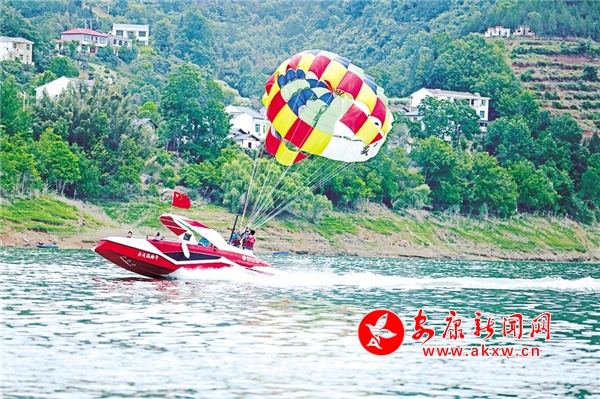 休閑勝地翠屏島,最大的亮點(diǎn)是玉清橋的彩虹瀑布,游客從橋下經(jīng)過,感受“瀛湖之水天上來”的曼妙,這也是瀛湖為游客送上的初夏第一絲清涼。橋頭幸福的天梯、鳥巢,成為排隊(duì)拍照的絕佳點(diǎn)位。運(yùn)動(dòng)場上,滾鐵環(huán)、射箭、投壺、打籃球,讓游客流連忘返。兒童樂園旁,微型爆米花機(jī)勾起了孩子們參與的興趣,彩繪激發(fā)了孩子們的繪畫熱情。瀛湖水上嘉年華,精彩刺激的水上項(xiàng)目帶給游客酣暢的體驗(yàn),游客紛紛直呼“過癮”!