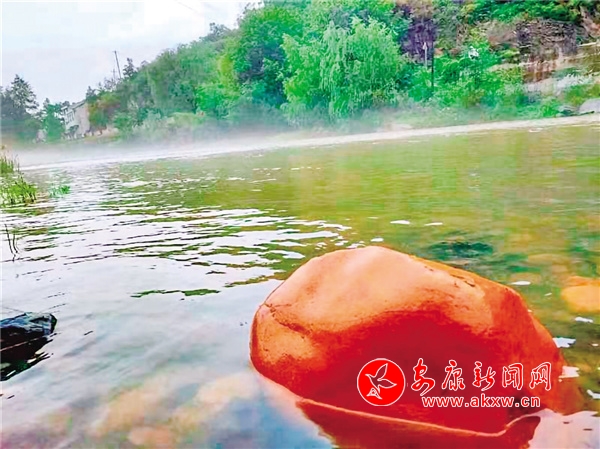 富家河以盛產(chǎn)黃蠟石而聞名,溯溪而上,積水成潭,故有了黃石灘之說(shuō)。辛丑仲夏,駐村工作的使然,便和黃石灘有了初次接觸。多雨的季節(jié),多霧的節(jié)奏,雨止霧起,氤氳云煙,漲水淹沒(méi)了過(guò)水橋,半拱在潺潺溪水中只剩下一星點(diǎn)月牙兒,微風(fēng)吹來(lái),蕩起一串串漣漪,擴(kuò)散到岸邊,紫信吐芳、綠竹搖曳、蝴蝶飛舞、蟬羽嘀鳴,散落在泥土中,黃蠟石顯得特別突兀……水域絕色,宛如仙境一般。