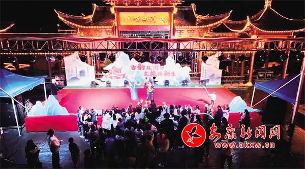 漢陰縣雙河口古鎮(zhèn)景區(qū)正在進行文藝演出。王建霞 攝
