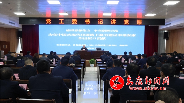 本網(wǎng)訊(通訊員 李祖明)11月9日,市委副書記、常務(wù)副市長、恒口示范區(qū)黨工委書記高晶華以“感悟思想偉力、爭當(dāng)創(chuàng)新示范,為在中國式現(xiàn)代化道路上聚力建設(shè)幸福安康作出恒口貢獻”為題,為恒口示范區(qū)黨員干部講授主題教育專題黨課。
