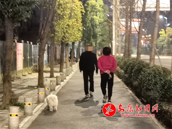 1月11日,在吾悅廣場(chǎng)附近,有市民遛狗不牽繩。