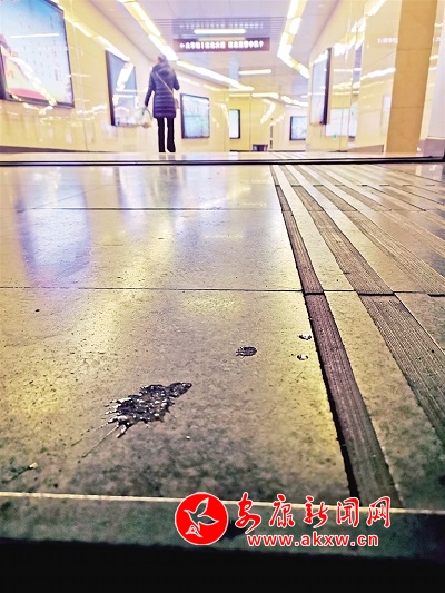 1月16日,有市民在安康城區(qū)江北大道地下通道內隨地吐痰。