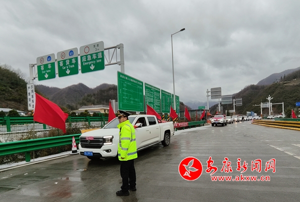 本網(wǎng)訊(楊明海 張旭)2月21日,因降雪結(jié)冰,安康境內(nèi)多條高速臨時(shí)性交通管制。在安(康)來(lái)(鳳)高速平(利)鎮(zhèn)(坪)段鐘寶收費(fèi)站外廣場(chǎng),一支迎親車(chē)隊(duì)被滯留,陜西交控安平分公司鎮(zhèn)坪管理所緊急相助,為新人打通“幸福路”。