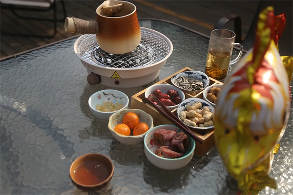 翠屏島瀛湖茶舍,我們推出了圍爐煮茶項(xiàng)目,炒茶師傅現(xiàn)場殺青、揉捻、干燥,隨后將瀛湖的明前茶呈送到游客面前。當(dāng)然,游客若有興趣,也可親自實(shí)操這難能可貴的體驗(yàn)。