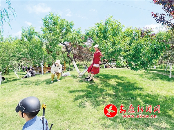 5月5日,在安康高新區(qū)桃花源景區(qū)內(nèi)存在不文明旅游現(xiàn)象,一游客靠坐在桃花樹干上拍照。胡波 攝