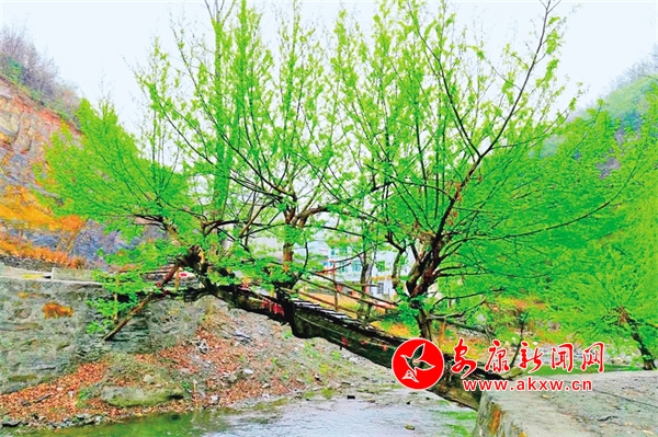 四十多年前,一場百年不遇的洪災(zāi),沖壞堤坎,毀了樹木,襲了田地,河灘一片狼藉。這棵老柳,根部的土石被洪水沖刷得所剩無幾,沒有泥土的支撐樹干緩緩傾斜,晃悠了一天一夜,頭部漸漸地搭到了東岸堤坎。次日清晨,河?xùn)|有人發(fā)現(xiàn)了,立即喊上四五個小伙子,從樹身爬過,去西岸救人、查災(zāi)。緊接著,兩岸的人們爭相過河到對岸去救災(zāi)、救苗,又陸續(xù)過河修路、種地,進(jìn)而過河上學(xué)、出山,一連數(shù)月都從樹身爬過,把這樹干當(dāng)作橋身,你來我往地通行于兩岸。于是,這道天然“樹橋”,既凝聚了生產(chǎn)救災(zāi)力量傳遞了兩岸情感,又溝通了人流、物流、信息流。