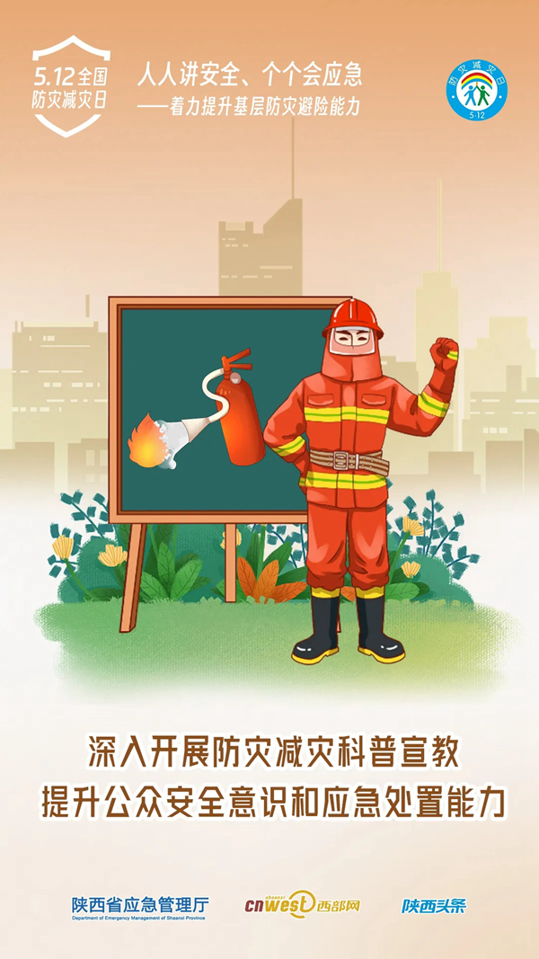 今年5月12日是第16個全國防災(zāi)減災(zāi)日,5月11日至17日為防災(zāi)減災(zāi)宣傳周。今年全國防災(zāi)減災(zāi)日主題為“人人講安全、個個會應(yīng)急——著力提升基層防災(zāi)避險(xiǎn)能力”