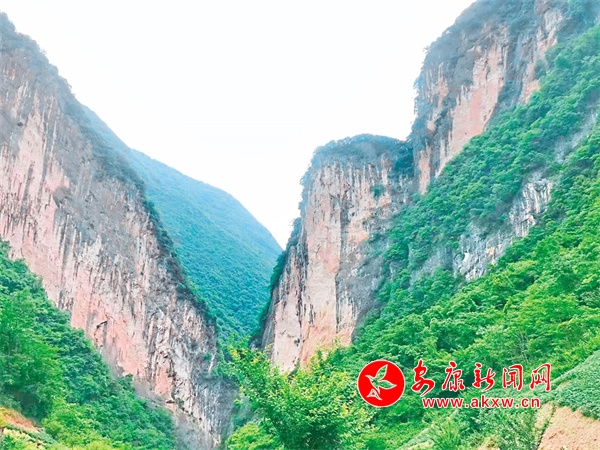白巖坡就是大巴山的杰作,地質斷層形成的兩座山峰如同兩扇大門,擋在通往巴山的路途上,展示著什么是“一夫當關,萬夫莫開”。歲月的風霜雪雨、日曬夜露將山體侵染成灰白相間的印跡,像極了牛角上的紋路,生命力極強的花草樹木在懸崖峭壁上瘋狂生長,一條不知趣的小溪硬是從兩山夾峙中拼命擠過,切出一道深澗,絮絮叨叨著“水可穿石”。從巖石里、溶洞中、草木根沁出的泉水,爭先恐后地竄進小溪,歡歌嬉戲。停車駐足,一股清新空氣不打招呼地沁入心脾,全身舒坦。抬頭仰望,一線天里寫滿花草樹木、藍天白云、風花雪月,讓人心曠神怡,仿佛到了世外桃源。