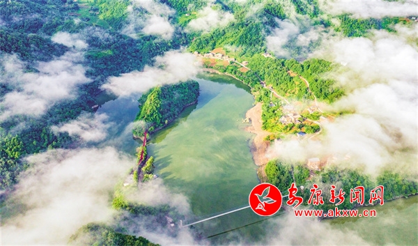 穿過密林,移步水邊,小島早已與一汪碧水融為一體,綠瑩瑩的水環(huán)繞著小島,島以水為鏡,水以島為景。此時(shí)的小島猶如一位漂亮的村姑,靜靜地欣賞著水中的倩影。汪汪碧水、陣陣鳥鳴、悠悠藍(lán)天,讓人不自覺地?cái)柯暺翚?,生怕打亂這寧靜風(fēng)景,那就只好用心去感受欣賞了。