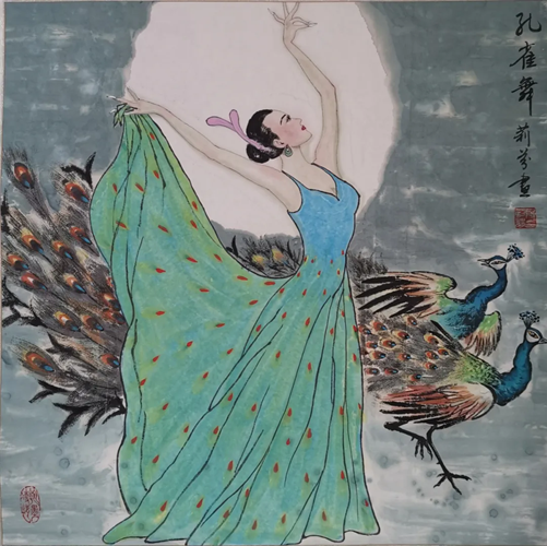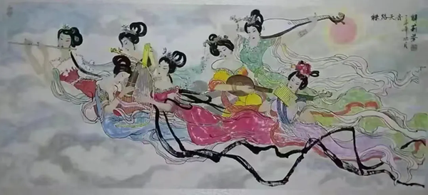 解大姐是陜北人,性格開朗、直率,說話中間或帶出一些濃重的陜北口音。雖說她主業(yè)從于政界,但她微笑的背后卻潛藏著不可掩飾的藝術(shù)天賦,揮發(fā)著令人奪目的藝術(shù)才情。繁雜的政務(wù)工作之余,她創(chuàng)作不輟,堅持不懈,居然在多個藝術(shù)門類收獲頗豐,好評連連。寫小說,她寫出幾十萬字的長篇出版發(fā)行;寫劇本,竟拍成了電影予以公映;學(xué)國畫,亦讓藝術(shù)界的大咖贊口不絕。我雖不才,空有浮名,但深耕藝界多年,對于其中的好賴還能分出一二。我感到,一個人的人品和藝品基本一致,解大姐的藝術(shù),是扎根于她熟悉的陜北大地的藝術(shù),是生長在山峁峁上經(jīng)歷風(fēng)霜雨雪的藝術(shù),就像那陜北倔強(qiáng)的疙瘩柳,散發(fā)著對土地對生活的親近和熱情,對人生價值實現(xiàn)的不屈和追求??吹剿膰嬓伦?,有陜北剪紙等民間藝術(shù)的滋養(yǎng)和影響,真切而樸實。她的飛天人物系列,泥古而不落窠臼,使我想到疙瘩柳條隨風(fēng)擺動的婀娜風(fēng)姿,溫溫潤潤,令人遐思和向往;她的花鳥畫作,使我想到陜北山野一片蒼茫之間,一朵兩朵盛開的山丹丹花,嬌艷得令人不忍觸手;她的山水畫作,又猶如陜北山原上嫩黃的棗花,洋溢著撲面而來的質(zhì)樸、清新和率真之氣。