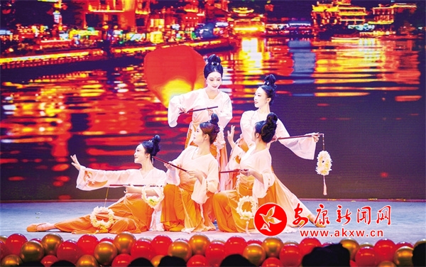 《喜迎新春》篇章中,相聲《笑語歡歌迎新春》,在說學逗唱間展現(xiàn)傳統(tǒng)文化的魅力,在歡笑聲中傳遞濃濃的新春氛圍;古典舞《民宿月影》,舞蹈演員們惟妙惟肖的舞姿生動地展示出寧陜精品民宿獨特的魅力;歌伴舞《走進寧陜》,時尚的說唱風格,充滿寧陜特色的歌詞,將全縣各鎮(zhèn)的特點描繪得淋漓盡致。
