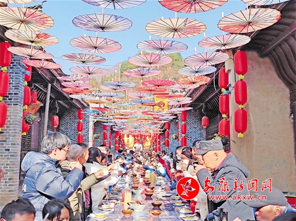 “觀眾朋友們大家好,這里是雙河口古鎮(zhèn),歡迎大家來到庖湯桌宴的活動現(xiàn)場!”冬季庖湯長桌宴的舉辦地,是修葺一新的驛道文化廣場,游客在這里觀看精彩的文藝節(jié)目,品嘗本土特色美食,欣賞茶馬古道歷史浮雕,品味雙河口魅力故事。該項目是2024年7月19日洪災(zāi)后,為修復(fù)損壞的護(hù)坡,依托現(xiàn)有地形條件,盤活原有閑置資源重新改造的文化廣場項目,于當(dāng)年10月1日建成投用。項目建成后,古鎮(zhèn)的景區(qū)框架拉得更寬,文化活動載體變得更大,文化內(nèi)容展示更加生動,配合12月31日建成投用的省級鄉(xiāng)村振興示范鎮(zhèn)展陳室項目,雙河口的歷史文化和人文故事變得可感可知,成為古鎮(zhèn)一處新的地標(biāo)性“打卡地”。