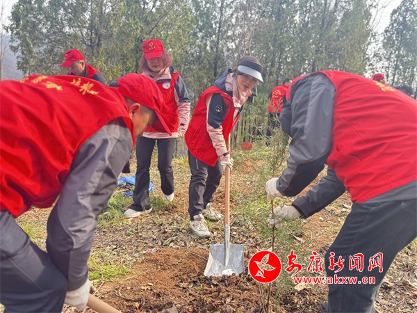 迎著和煦的春風(fēng),參加植樹的黨員志愿者,精神抖擻、干勁十足,兩人一組,或三五成隊,扶正樹苗、揮鍬培土、踏土夯苗、圍堰澆水,每個環(huán)節(jié)、每道工序都做得認(rèn)真細(xì)致,種下樹苗近100株。新栽種的樹苗錯落有致、迎風(fēng)挺立,增添了盎然生機(jī),吐露著無限春意。