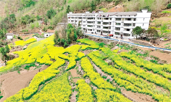 日前,走進(jìn)中華村綠煙安置點(diǎn),一排漂亮整潔的樓房,在藍(lán)天白云、油菜花的映襯下顯得清新美麗,房屋旁硬化的道路也干凈整潔。
