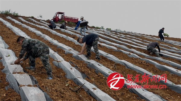 在認(rèn)真學(xué)習(xí)了技術(shù)人員傳授的“三壓三緊”科學(xué)覆膜技巧和移栽煙苗注意事項(xiàng)后,神河鎮(zhèn)干群3到4人為一組,或手持鋤頭開(kāi)壟覆膜、打孔破膜,或躬身移栽煙苗,提水澆水護(hù)苗……大家分工明確、配合默契,田間地頭穿梭著忙碌的身影,此起彼伏的勞作聲與機(jī)械作業(yè)聲交織成一曲“抗旱保收”的奮進(jìn)樂(lè)章。