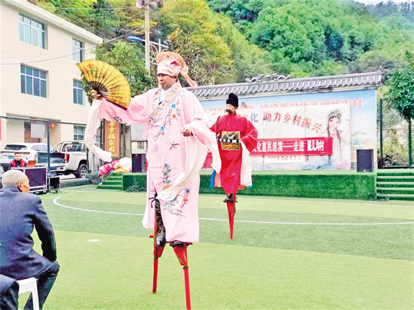 在五峰村,村支部書記羅仁春告訴記者,2023年村委會(huì)牽頭成立了五峰村文化民俗文藝協(xié)會(huì),陸續(xù)加入的48名會(huì)員涵蓋老中青三代,既有傳承高蹺絕技的老人,也有主動(dòng)學(xué)習(xí)弦子腔的年青一代。今年32歲的村民小梅加入?yún)f(xié)會(huì)后,一改往日下班后悶在家中的狀態(tài),每天下午吃完飯都會(huì)下樓和新認(rèn)識(shí)的姐妹載歌載舞,很快就成為舞蹈隊(duì)的主力?!耙郧安恢牢覀兇迳线€有文藝協(xié)會(huì),自從村上干部告訴我后,我就趕緊加入了這個(gè)小團(tuán)體,既鍛煉了身體,又愉悅了心情,生活幸福感越來越強(qiáng)烈?!鄙碇璧阜男∶飞碜随鼓龋滹w揚(yáng)間,明媚的笑容如花一樣燦爛。