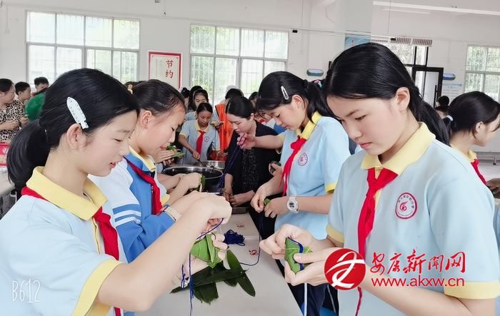 活動現(xiàn)場,老師與家長手把手向?qū)W生傳授包粽技巧,從粽葉的折疊角度、糯米的填充分量,到捆扎成形的精細(xì)手法,學(xué)生們圍坐桌前專注練習(xí)。折葉、填米、捆扎……轉(zhuǎn)眼間一個(gè)棱角分明的粽子便成型,現(xiàn)場粽葉翻飛、笑語不斷。活動中,老師們還穿插講解端午習(xí)俗,當(dāng)熱氣騰騰的粽子出鍋時(shí),孩子們捧著軟糯香甜的粽子細(xì)細(xì)品嘗,在味蕾的享受中感悟傳統(tǒng)文化的深厚底蘊(yùn)。