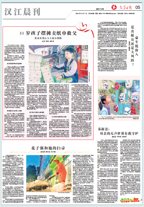 (2024年5月7日安康日?qǐng)?bào)05版“10歲孩子擺攤賣紙巾救父 獲眾多愛(ài)心人士接力幫助”)