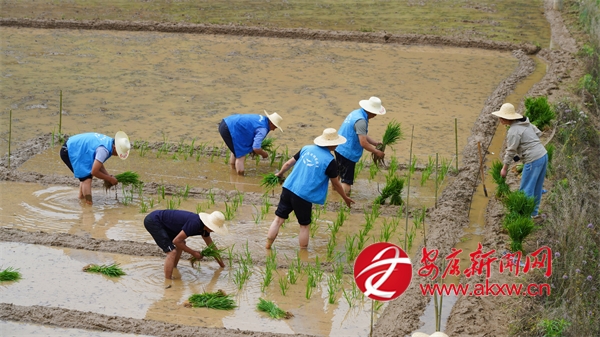 6月5日,走進城關(guān)鎮(zhèn)漁灣村麻莊組,一片熱火朝天的農(nóng)忙景象映入眼簾。農(nóng)技人員與農(nóng)戶們并肩作戰(zhàn),共同進行水稻插秧作業(yè)。劃線分區(qū)、精準配肥、均勻撒肥、有序插秧……每一項工作都進行得有條不紊,大家分工明確、配合默契,田間地頭處處洋溢著忙碌而歡快的氣息。