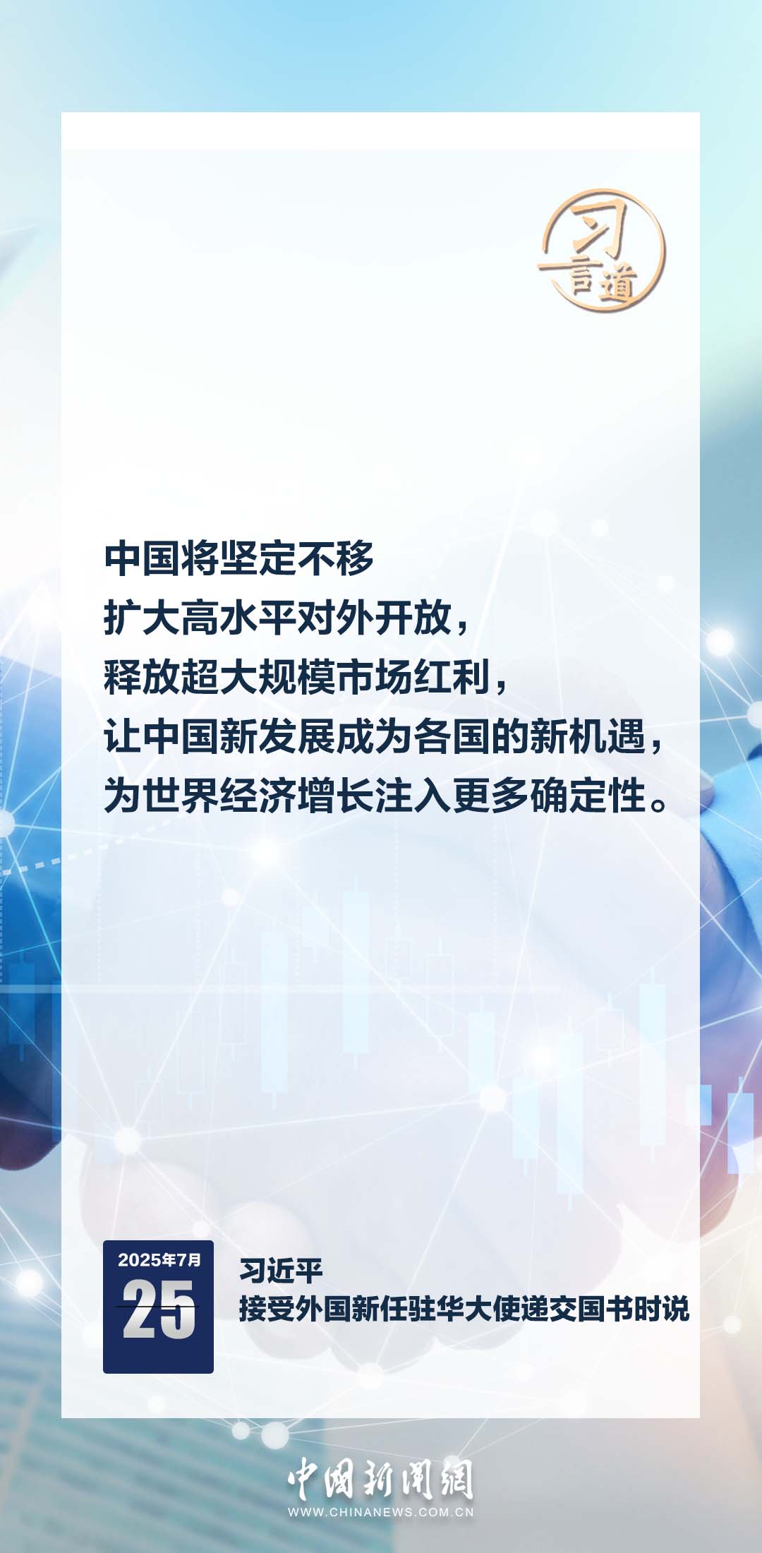 7月25日,國家主席習近平在北京人民大會堂接受16位駐華大使遞交國書。儀式結(jié)束后,習近平在北京廳對使節(jié)們發(fā)表講話。習近平指出——