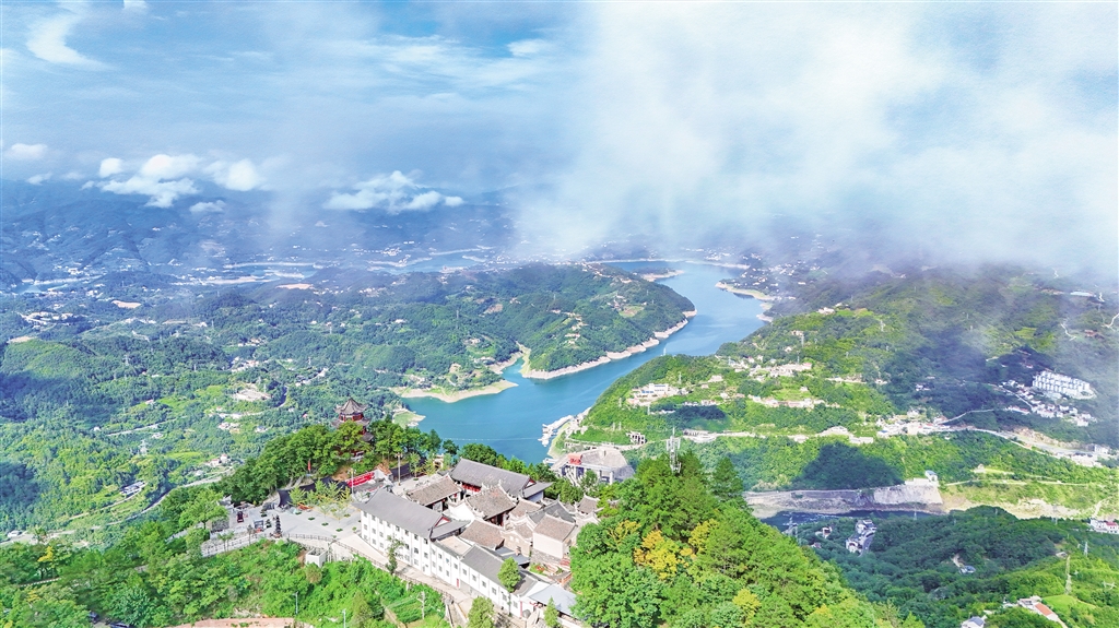 8月14日清晨,站在瀛湖風(fēng)景區(qū)內(nèi)遠(yuǎn)眺,遠(yuǎn)山、村莊相互映襯,風(fēng)景如畫(huà)。趙華斌 攝