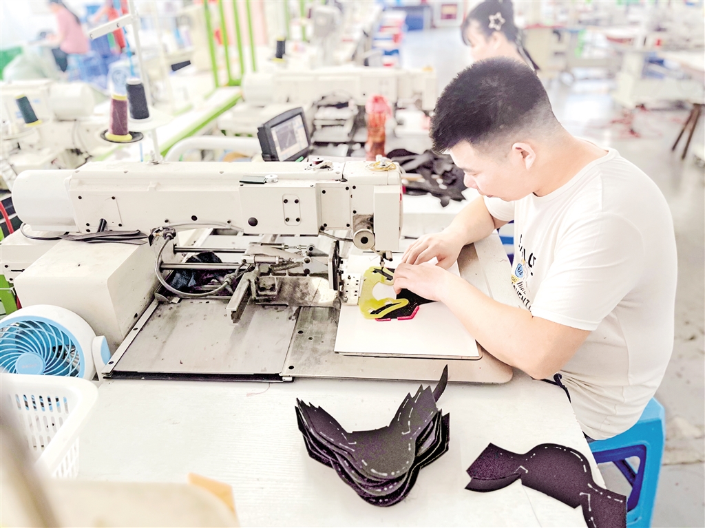 同樣忙碌的場(chǎng)景也出現(xiàn)在景鑫鼎昊鞋業(yè)公司的車間內(nèi)。“根在這,總要回來做點(diǎn)什么。”公司負(fù)責(zé)人劉守杰說,和許多小鎮(zhèn)青年一樣,他曾外出闖蕩,積累了豐富的行業(yè)經(jīng)驗(yàn)。一次與制鞋業(yè)的深度接觸,讓他看到了商機(jī),更看到了帶動(dòng)鄉(xiāng)親就業(yè)的可能?!白约焊涣瞬凰闵叮尨蠡锒紥甑藉X,那才叫本事?!睉汛Х床讣亦l(xiāng)的樸素心愿,2019年,他毅然返鄉(xiāng)創(chuàng)辦鞋廠。