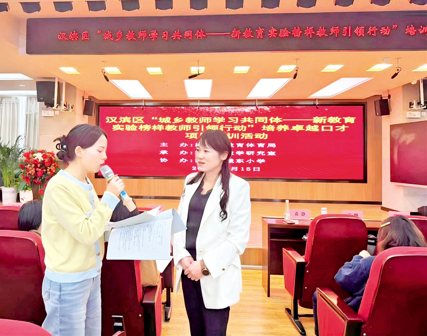 任毓萍(右)給教師培訓(xùn)