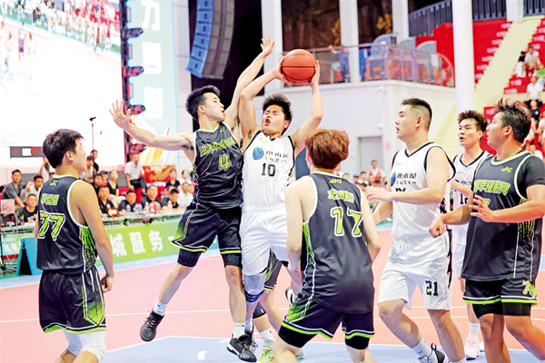 安康企協(xié)桃花源代表隊在外籍球員CJ·特羅特和賈森·漢尼拔的帶領(lǐng)下一度領(lǐng)先12分,南宮山代表隊球員在主力隊員梁歡、朱思禹先后受傷的不利局面下,由彭博帶領(lǐng)球隊艱難咬住比分。距離全場比賽結(jié)束9.8秒,南宮山代表隊3號隊員李子豪外線一記精準(zhǔn)的3分把比分追至78平,這是兩隊比分首次打平。CJ·特羅特后場接球,直插籃下,轉(zhuǎn)身后仰,將比分反超2分,留給南宮山隊3.2秒。南宮山代表隊4號球員彭博一記長傳跨過半場,精準(zhǔn)找到了6號球員韓邦,上籃,80分平,加時賽,球場響起山呼海嘯的歡呼。加時賽中,南宮山代表隊用一次次精準(zhǔn)的投籃、拼盡全力的防守,最終以93:88的比分奪得冠軍。