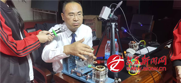 講座的亮點之一是關(guān)于“三相交流鼠籠式異步電動機”的現(xiàn)場實驗展示。嵇教授首先通俗易懂地闡釋了該類型電動機作為現(xiàn)代工業(yè)核心的重要地位及基本原理,隨后現(xiàn)場演示實驗過程,逐步解析其內(nèi)部結(jié)構(gòu)、旋轉(zhuǎn)磁場的形成機制,以及“鼠籠”轉(zhuǎn)子實現(xiàn)電能與機械能高效轉(zhuǎn)換的原理。抽象難懂的電磁學知識,在直觀的演示與生動的講解中變得清晰可感。嵇教授還引導同學們思考該項技術(shù)在各行各業(yè)的廣泛應(yīng)用,切身感受科技對社會發(fā)展的深遠影響。這一環(huán)節(jié)有效激發(fā)了同學們對工程技術(shù)的興趣與對科學原理的探索熱情。