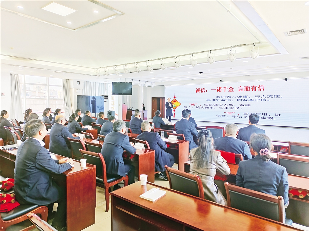 本網(wǎng)訊(記者 唐正飛 通訊員 楊光婷)“我們?yōu)槿颂幨?、與人交往,要講究誠信,即誠實(shí)守信……”11月21日,中國工商銀行安康分行會議室一場“以誠立身,以信致遠(yuǎn)”主題宣講會正在火熱進(jìn)行。工作人員化身誠信“宣講員”,解讀“誠信”內(nèi)涵,分享踐行誠信故事。