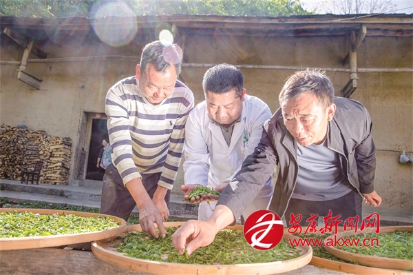 “十四五”期間,我市持續(xù)推進(jìn)茶產(chǎn)業(yè)發(fā)展,努力實(shí)現(xiàn)茶產(chǎn)業(yè)“四時有收”。圖為紫陽白茶非遺制作技藝代表性傳承人在高橋鎮(zhèn)裴壩村,向茶農(nóng)推廣紫陽白茶非遺制作技藝。 李勝璋 攝?