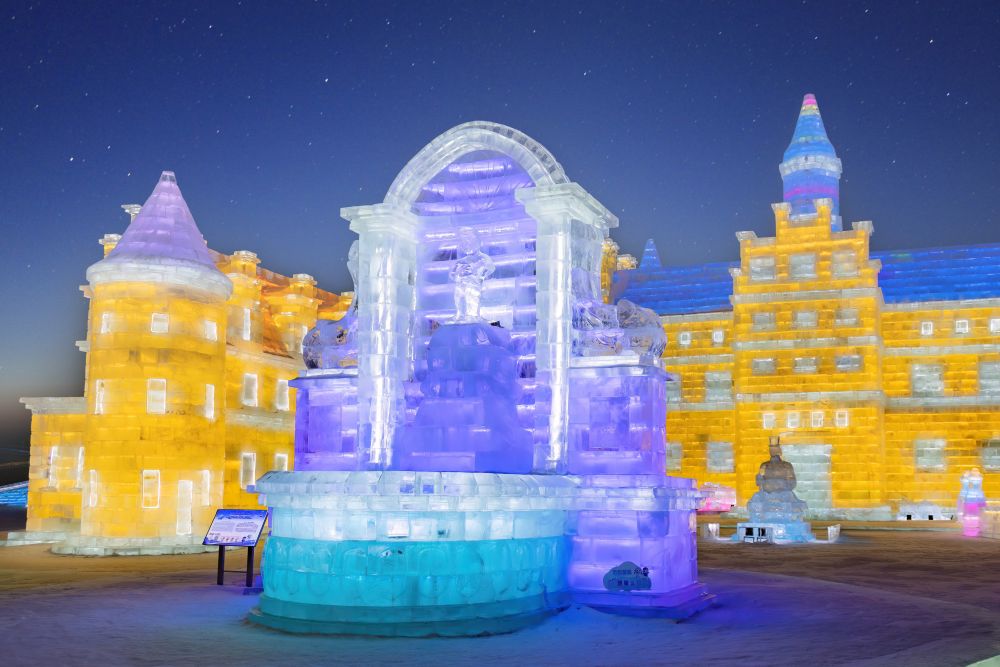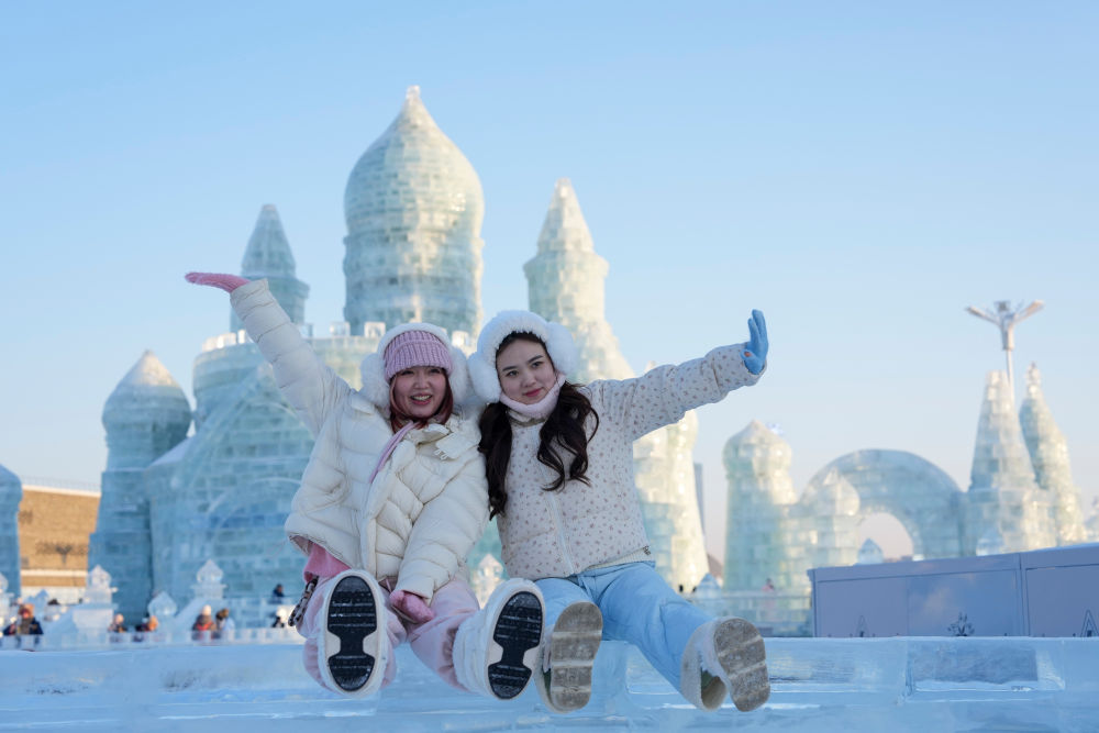 在哈爾濱冰雪大世界,來自世界各地的游客在“冰雪王國(guó)”感受冬日限定快樂。