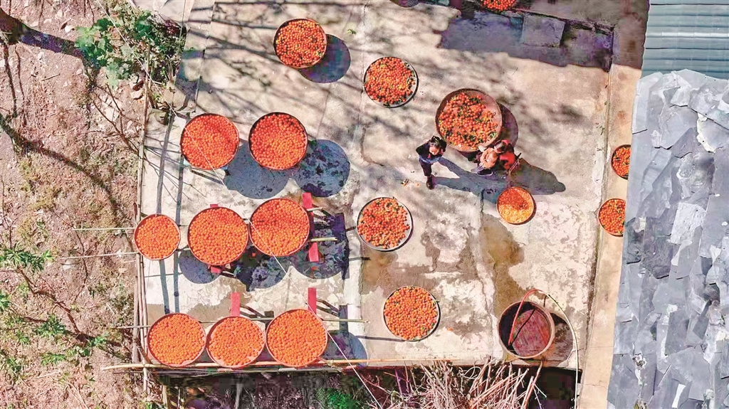 小橘茶的制作是對工藝和時令的精準(zhǔn)把握。旺源春茶廠負(fù)責(zé)人朱富玲介紹:“將紫陽富硒紅茶加入金錢橘殼內(nèi),再進行生曬、烘干、分揀、包裝。其外形優(yōu)美,湯色紅潤透亮,滋味醇和甘甜,茶香與橘香完美融合,深受顧客喜愛。”