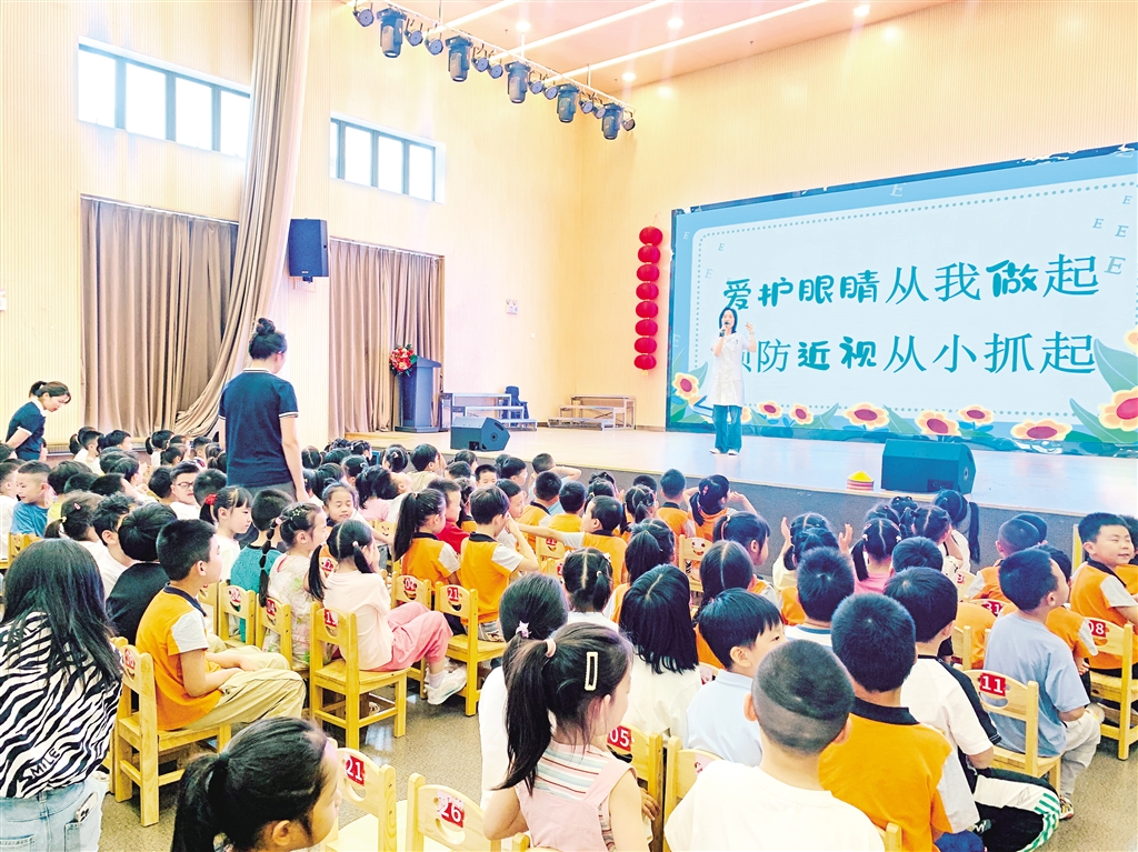 今年6月6日是全國(guó)第30個(gè)“愛眼日”。在愛眼日來(lái)臨之際,6月5日下午,市婦幼保健院兒童保健科醫(yī)生陳興芳走進(jìn)安康市高新區(qū)第六幼兒園,為大班幼兒及老師帶來(lái)近視防控知識(shí)講座。陳興芳以眼睛的謎語(yǔ)開場(chǎng),用通俗易懂的語(yǔ)言向孩子們介紹了眼睛的結(jié)構(gòu)和功能,并通過(guò)生動(dòng)的科普向小朋友們介紹了如何正確用眼、保護(hù)視力以及手衛(wèi)生的方法。通過(guò)此次活動(dòng),不僅讓孩子們了解了眼睛的重要性,更提高了孩子們愛護(hù)眼睛的意識(shí)。(鄒春艷 攝)