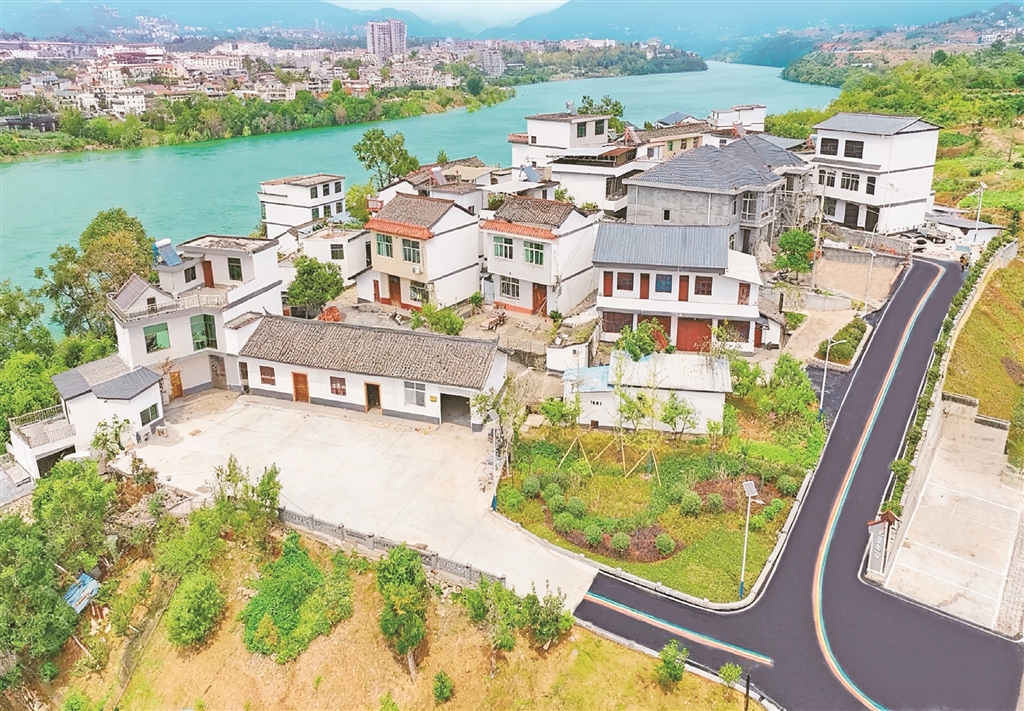 漢濱區(qū)張灘鎮(zhèn)立石村王家院子55戶農(nóng)房完成風貌改造,昔日農(nóng)舍變?yōu)閯e具特色的“江景院落”。 李靖 攝