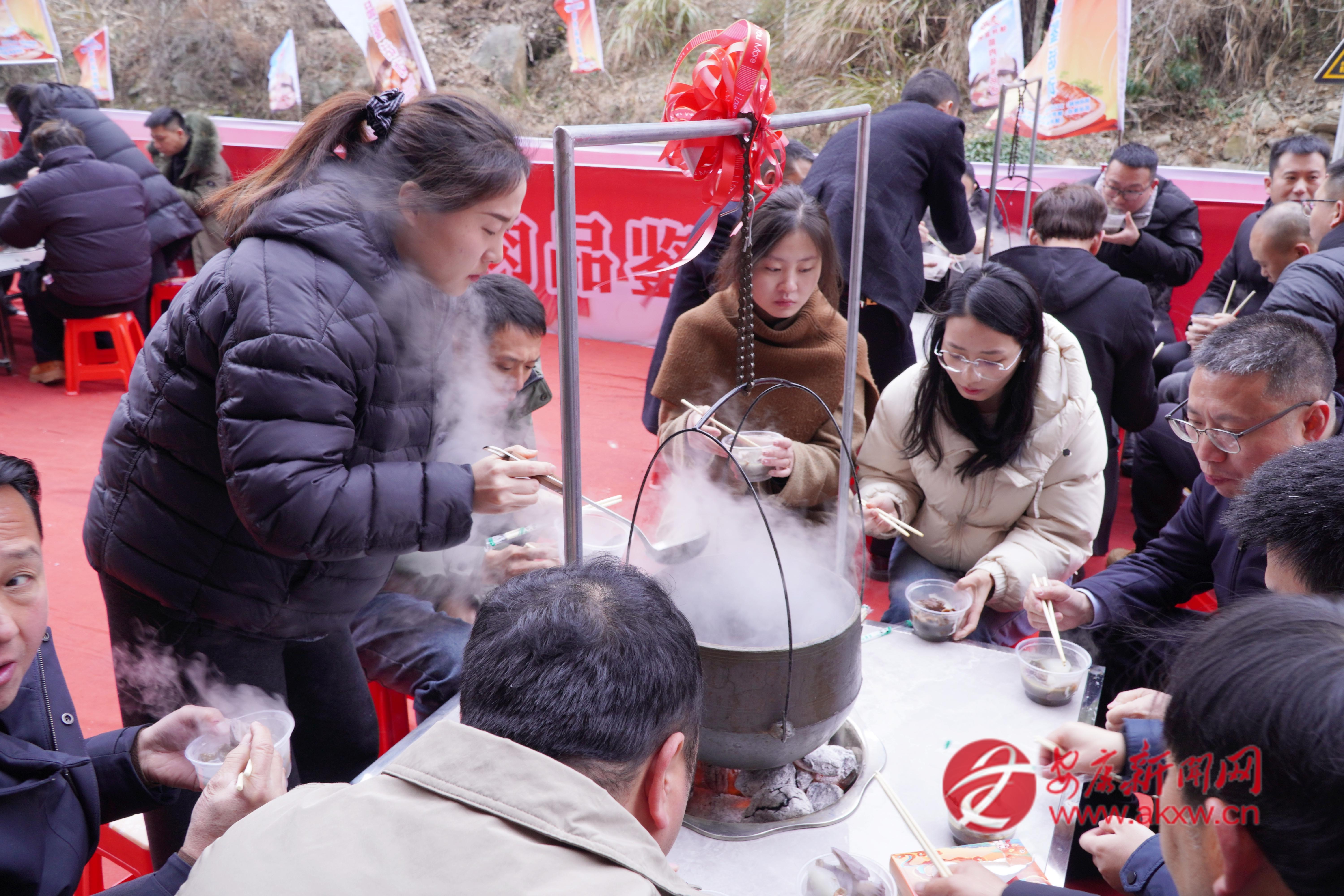 活動(dòng)現(xiàn)場(chǎng),一口巨型大鐵鍋格外引人注目,它可以燉500斤肉,可供1000人同時(shí)品嘗鎮(zhèn)坪富硒臘肉。同時(shí),20個(gè)吊鍋中,臘肉與香菇、竹筍、干洋芋果果一同燉煮,香氣四溢,讓人垂涎欲滴。賓客們圍坐一起有說(shuō)有笑,品嘗著可口地道的鎮(zhèn)坪臘肉,不僅是一場(chǎng)臘肉美食的集會(huì),更是一種非遺技藝的傳承。“早就聽(tīng)說(shuō)陜南鎮(zhèn)坪的富硒臘肉有名,這次專程趕來(lái),就為這一口地道的臘味,品嘗后覺(jué)得這臘肉的味道太美了!”在活動(dòng)現(xiàn)場(chǎng),一位來(lái)自西安的游客李先生在品嘗鎮(zhèn)坪臘肉后高興地說(shuō)道。