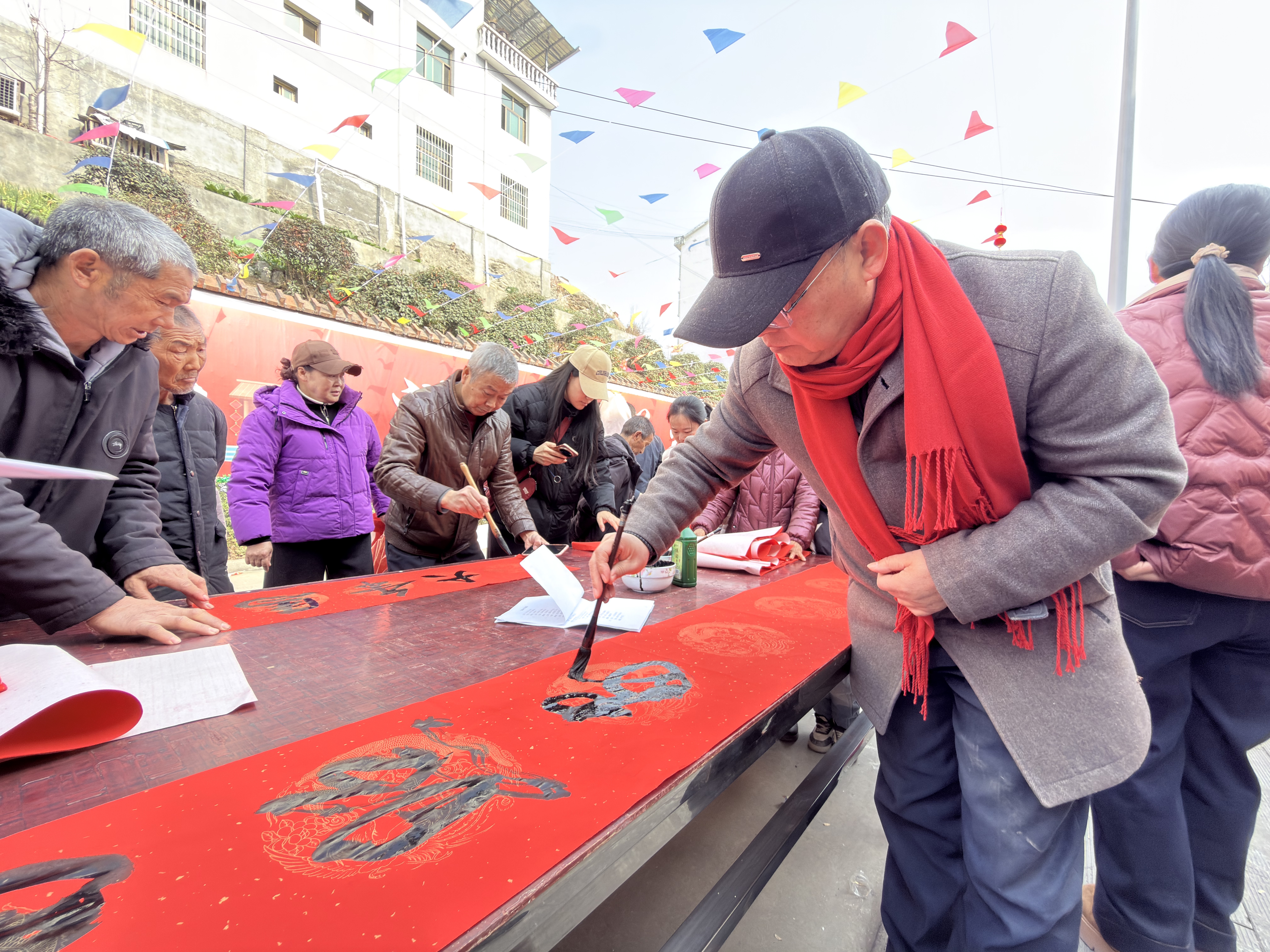 集市現(xiàn)場還設(shè)置了義寫春聯(lián)、線上直播帶貨和特色美食評鑒區(qū)。市文聯(lián)和市民間文藝家協(xié)會的書法志愿者揮毫潑墨,為群眾送上新春祝福;主播同步推介本地特色農(nóng)產(chǎn)品,通過直播拓寬銷售渠道;群眾邊品嘗特色美食邊交流感受,現(xiàn)場煙火氣十足。
