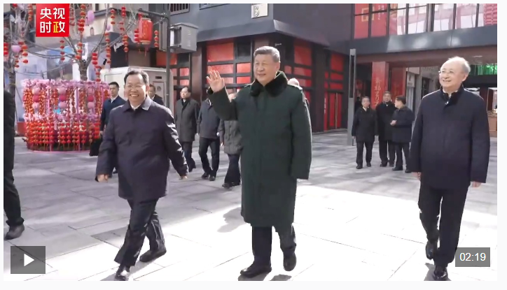 2月10日上午,在北京考察調(diào)研的習(xí)近平總書記來到隆福寺街區(qū),了解當(dāng)?shù)刎S富節(jié)日市場供應(yīng)、打造城市特色活力片區(qū)等情況,看望慰問基層干部群眾。這一天恰逢農(nóng)歷小年,隆福大廈前,新春市集吸引了大量市民和游客。習(xí)近平饒有興致察看各式年貨攤位,同現(xiàn)場群眾親切交流。