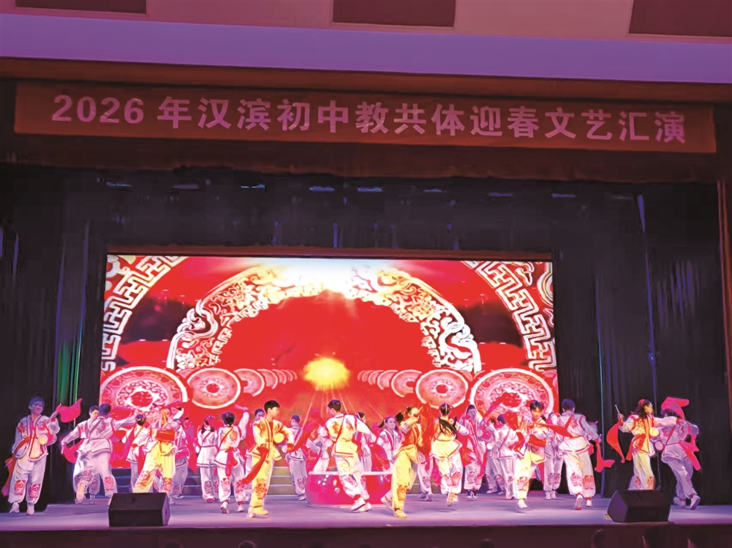 2月4日,漢濱初中教育共同體舉辦“同心筑夢傳薪火·和美共生向未來”迎春文藝匯演。演出分為“薪火相傳”“融合共進(jìn)”“夢想綻放”三大篇章,通過舞蹈、朗誦、非遺展示、音樂快板等豐富形式,生動(dòng)展現(xiàn)了教育的初心使命與育人成果。 朱合玲 攝