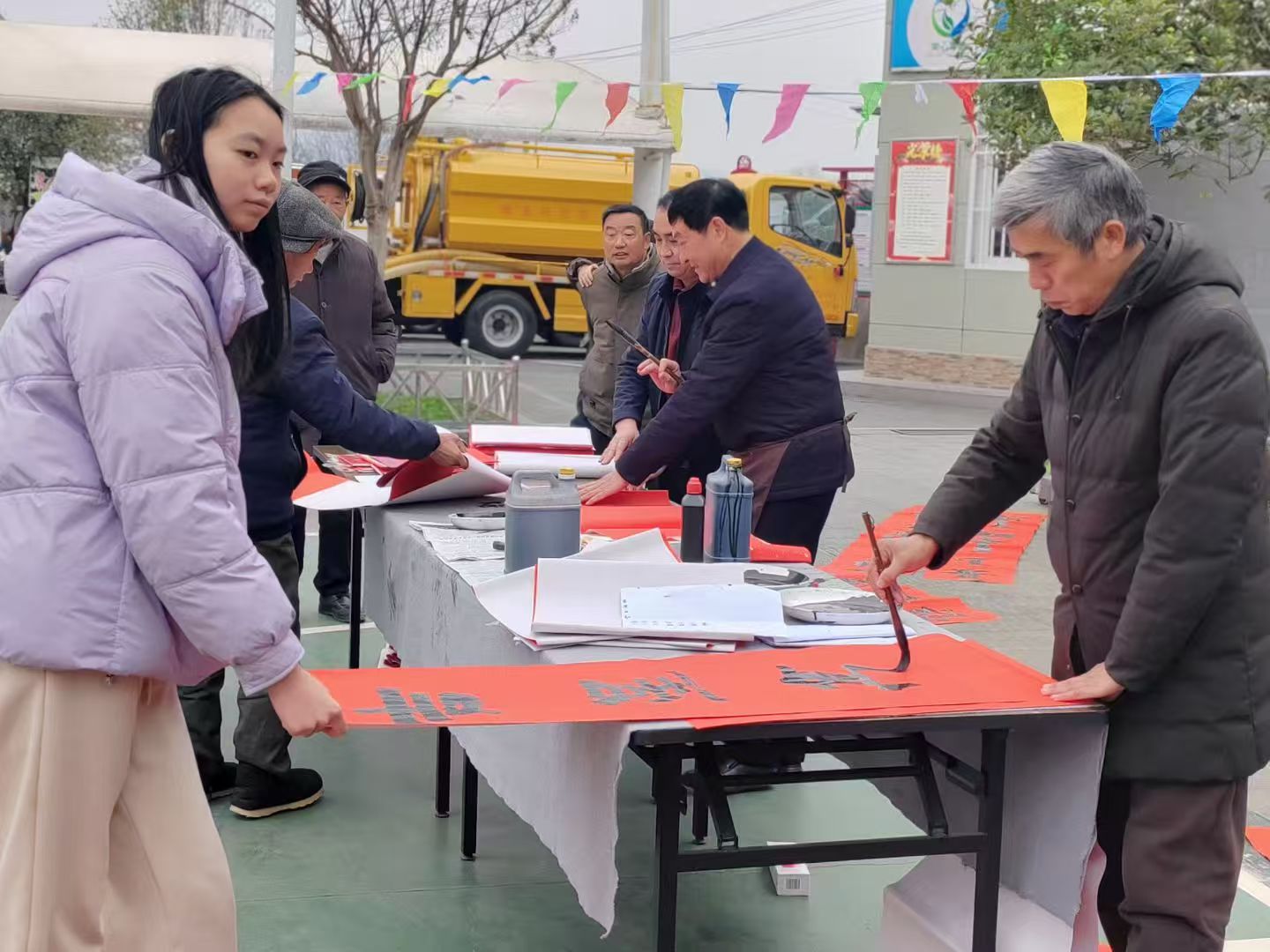 “村晚”現(xiàn)場還設(shè)置了新春惠民服務(wù)區(qū),成為一道溫暖的風景線。鎮(zhèn)文化站邀請本土書法家現(xiàn)場揮毫潑墨,免費為村民書寫春聯(lián)和福字,墨香四溢,紅紙映春,村民們有序排隊領(lǐng)取,把新春祝福帶回家。鄉(xiāng)村年貨展銷區(qū)人氣高漲,漢陰富硒糧油、土蜂蜜、臘肉、豆腐干等特色農(nóng)產(chǎn)品整齊擺放,駐村第一書記、村“兩委”干部化身“推銷員”,熱情推介本土好物,既方便村民置辦年貨,又拓寬農(nóng)產(chǎn)品銷售渠道,讓“村晚”既有文化味,更有煙火氣與增收實效。