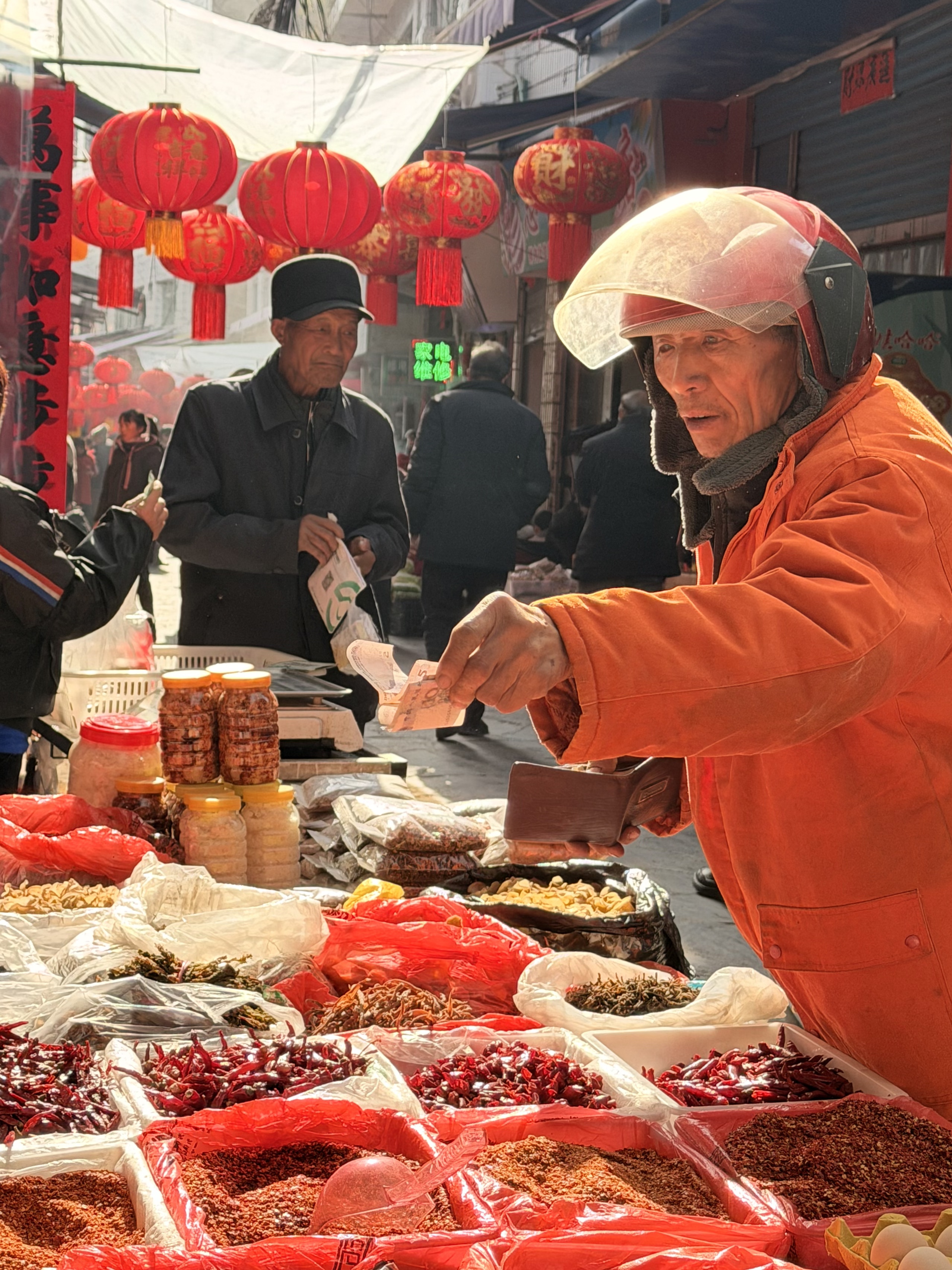 在紫陽(yáng)縣蒿坪鎮(zhèn)集市,居民正在采購(gòu)年貨。 陳軍 攝