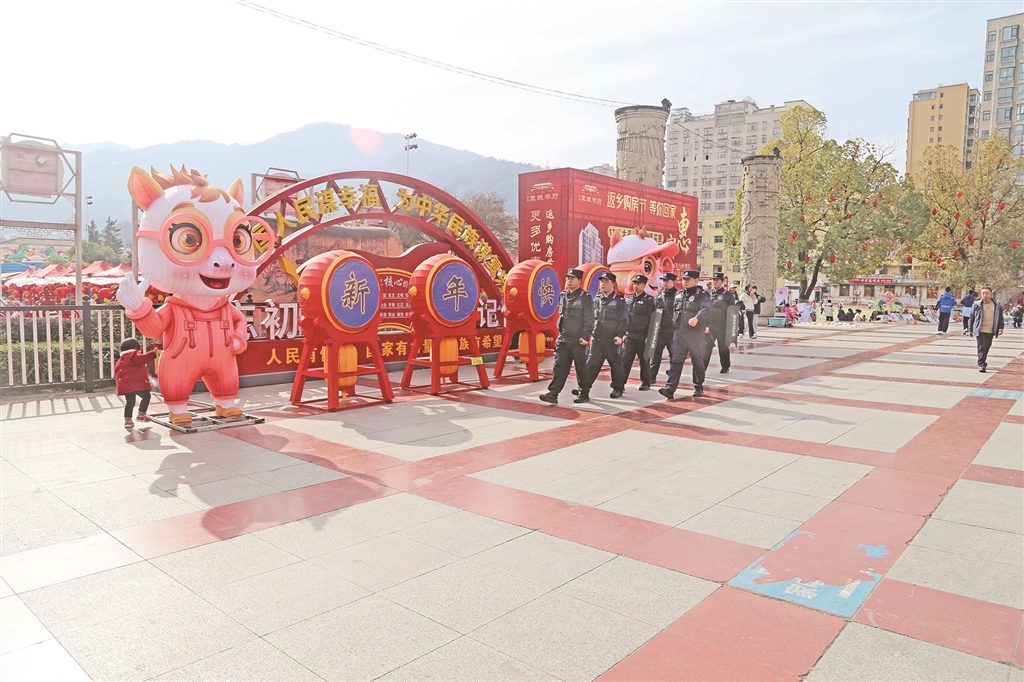 ③ 平利縣公安局強(qiáng)化街面巡邏防控,筑牢節(jié)日安全防線。張婷 攝